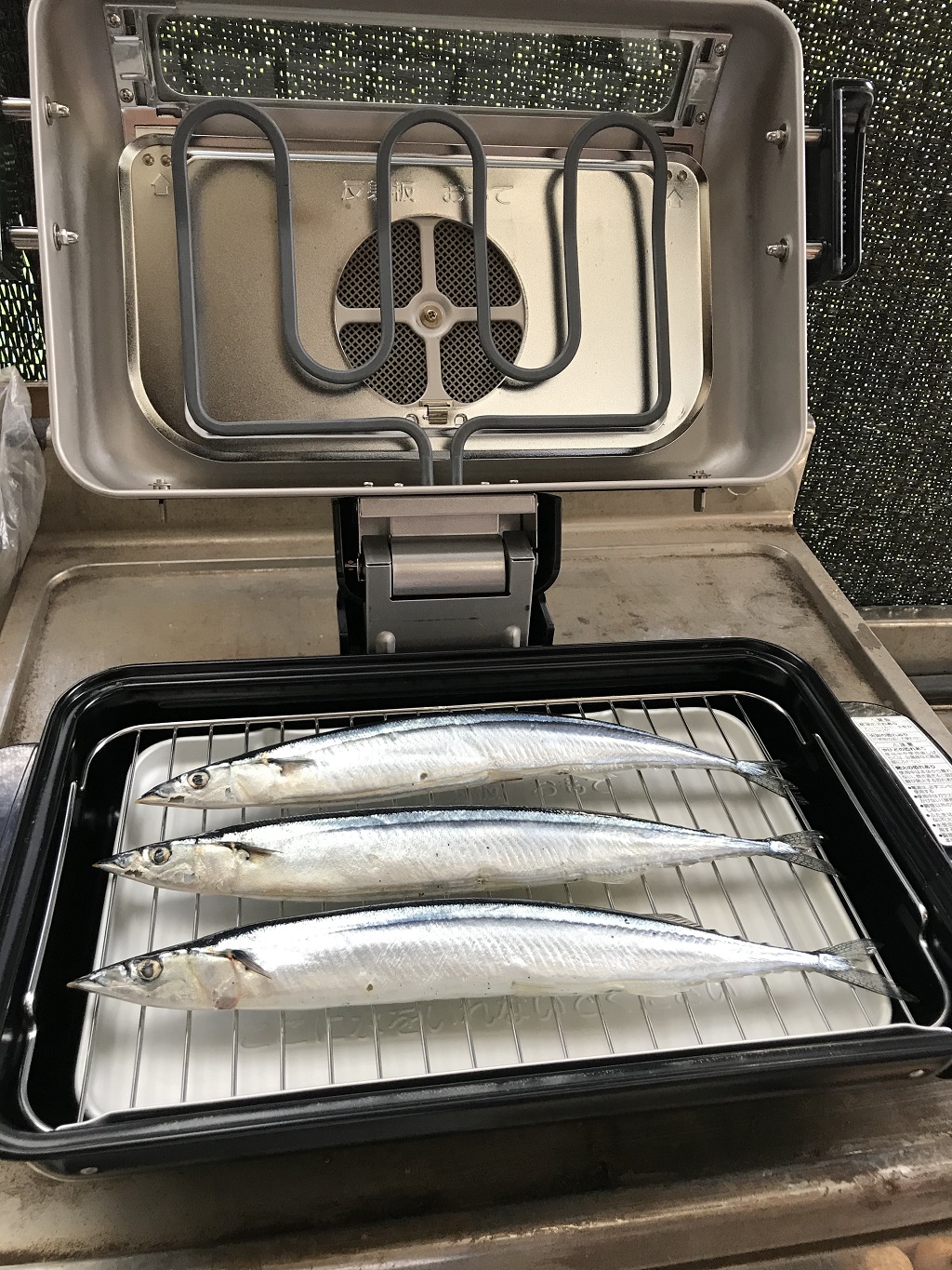秋の味覚のひとつのさんま 皆さんはもう食べましたか?今年は去年よりも収量が少ないようですね。我が家では生さんまは到底食べられないでしょう。今回のは北海道産の塩サンマです。これでも十分美味しく頂けました。我が家の魚焼き器はIHでしたが頻繁に使うのか とうとう壊れてしまいました。そこで今回魚焼き器の専用機を購入しました。国産メーカーのいいやつです。電気の魚焼き器ですが良いのは外(下屋のあるところ)で焼くことができ家の中が全く臭くならないことです。従来は魚を焼いた日は換気扇を一晩回していましたが、今後はそれをしなくてもよさそうです。綺麗にこんがりと焼きあがりました。次回は何か違う魚を焼いてみようかと考えています。